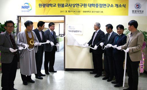 이날 개소식 및 현판식을 가진 원광대학교 원불교사상연구원 대학중점연구소는 지난해 10월 한국연구재단에서 주관한 ‘2016년도 인문사회분야 대학중점연구소 지원 사업’에 선정돼 6년간 총 13억 2천만원의 연구비를 지원받는다.